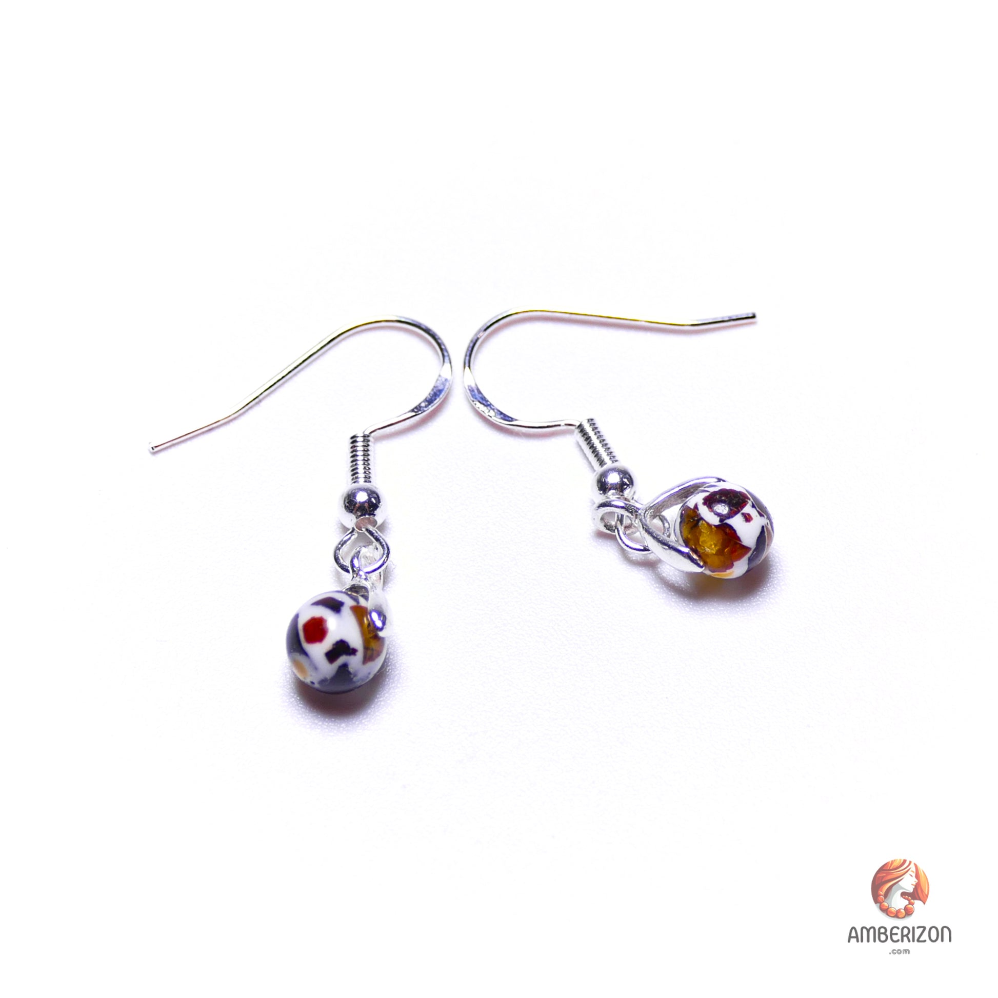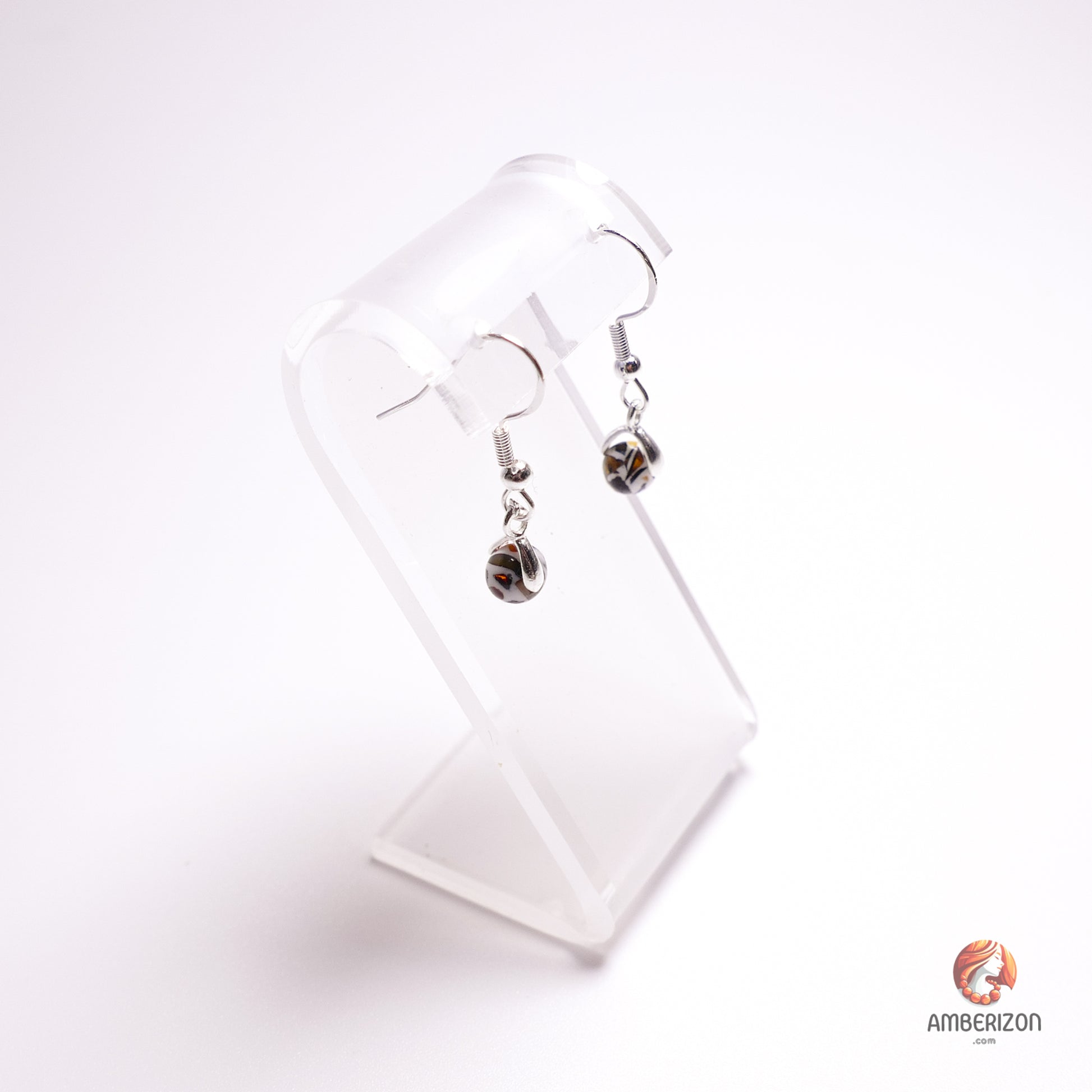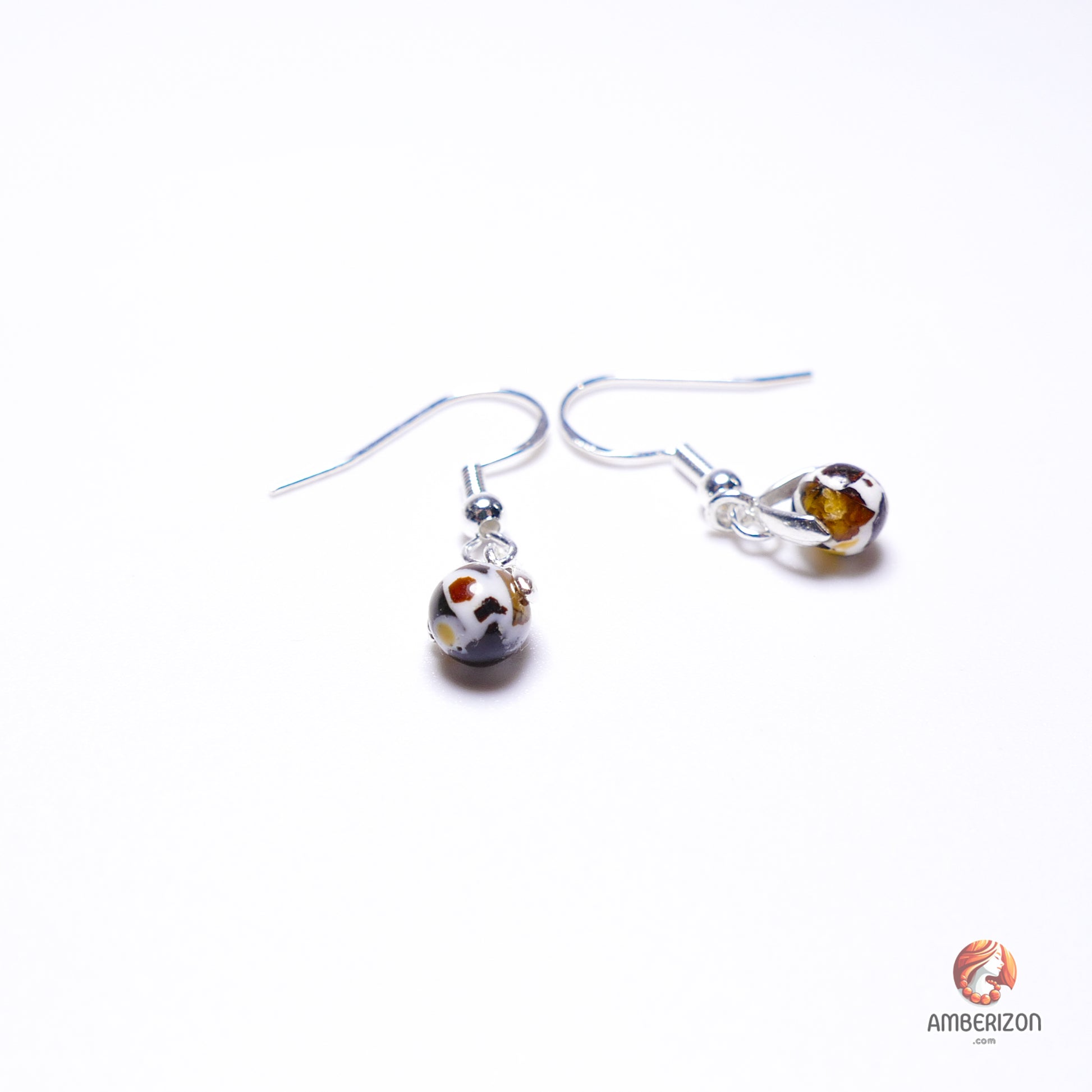Baltic amber ball earrings - Mosaic (dalmatian) ball beads
